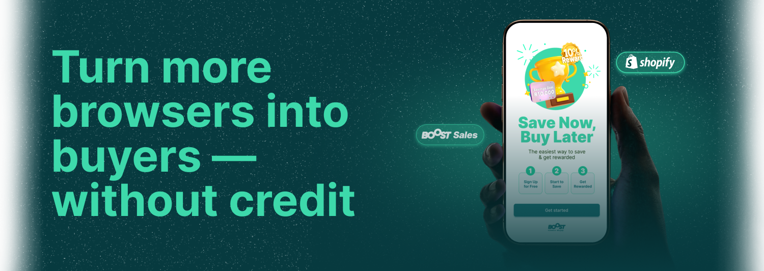 BOOST Rewards is a first-of-its-kind Save Now, Buy Later (SNBL) app designed for Shopify.
